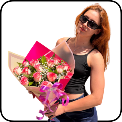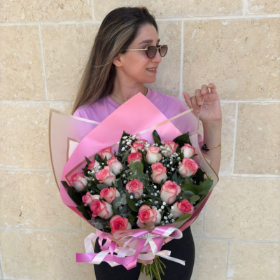 בוקט זר ורדים ורודים גובה 40-45 ס"מ,