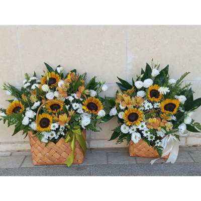 סידור חמניות שמש בכלי קלוע