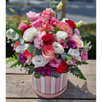 סידור פרחים בקופסא גודל בינוני (כמו בתמונה)